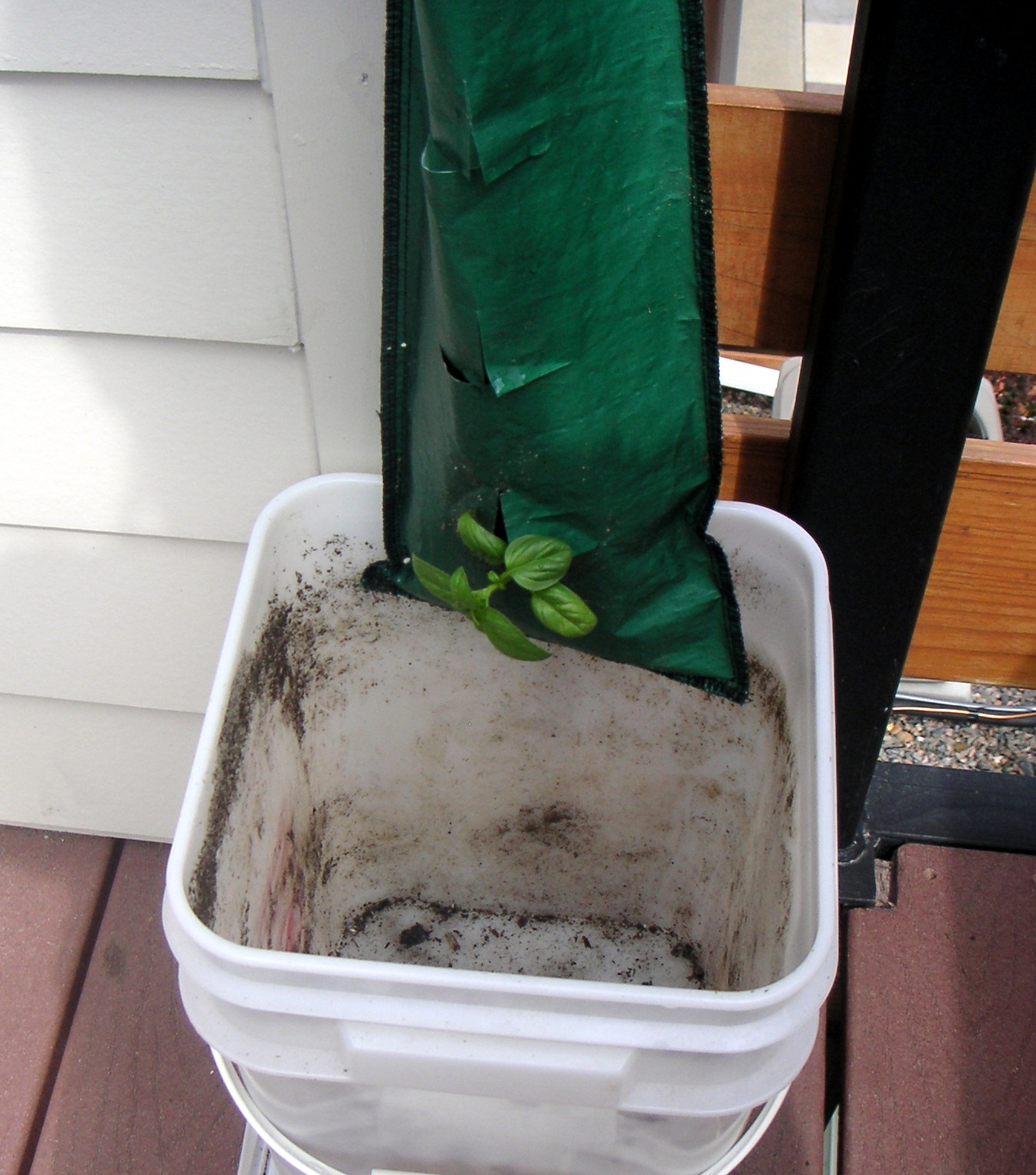 As you can see, we are experimenting with a variety of different styles and sizes of containers. In addition to some basic plastic pots, we decided to also try out Smart Pots. They are the fabric containers in the picture. I’m curious to see whether they live up to their promise as being excellent vehicles for container gardening.